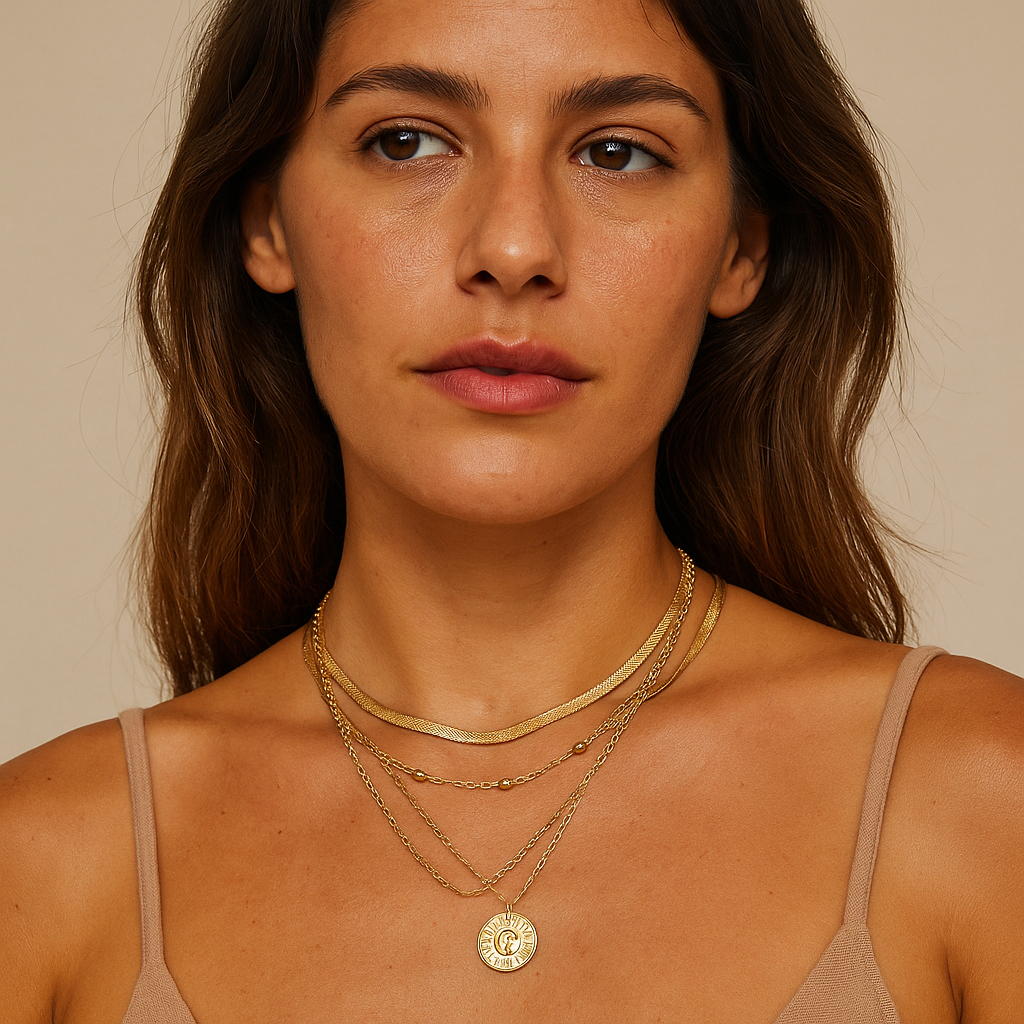 סט שרשראות שנהב משלב שלושה עיצובים בגוון כסוף ליצירת מראה אלגנטי, קליל ונשי. כל שרשרת נבחרה בקפידה להשלמת המראה – החל בצ'וקר כסוף חלק, דרך שרשרת חרוזים זעירים ועד לתליון עגול עדין שמשלים את ההרמוניה.